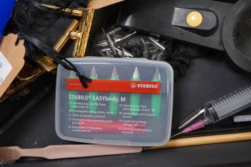 A collection of writing equipment items to include: inks, nibs and pen repair items