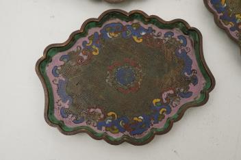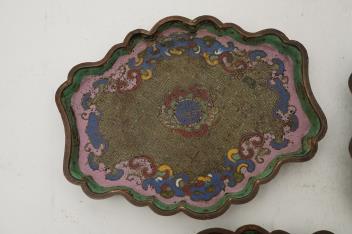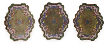 Lot 219 , Three Chinese cloisonné enamel stands or trays, 18th century