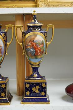 Lot 1454 , A pair of early 20th century Vienna style porcelain urns and covers, 36cm