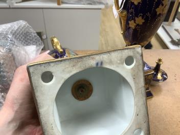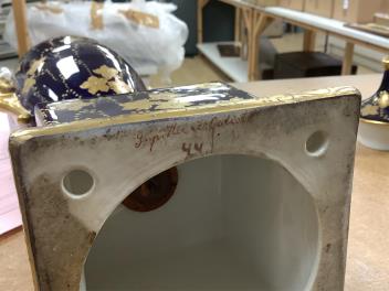 Both structurally good, including covers; some wear to gilding. Not crazed; both oval panels inscribed Kaufmann; one entitled Jupiter et Calista, the other title indistinct; both with so-called Beehive marks.