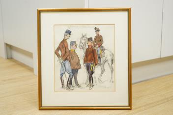 Lot 1362 , Attributed to Alfred Gerstenbrand, Caricature of military figures, signed and inscribed, details verso, pastel, 28 x 25cm
