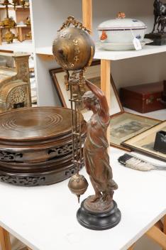 Lot 1311 , A late 19th century spelter figural mystery clock, 63cm high