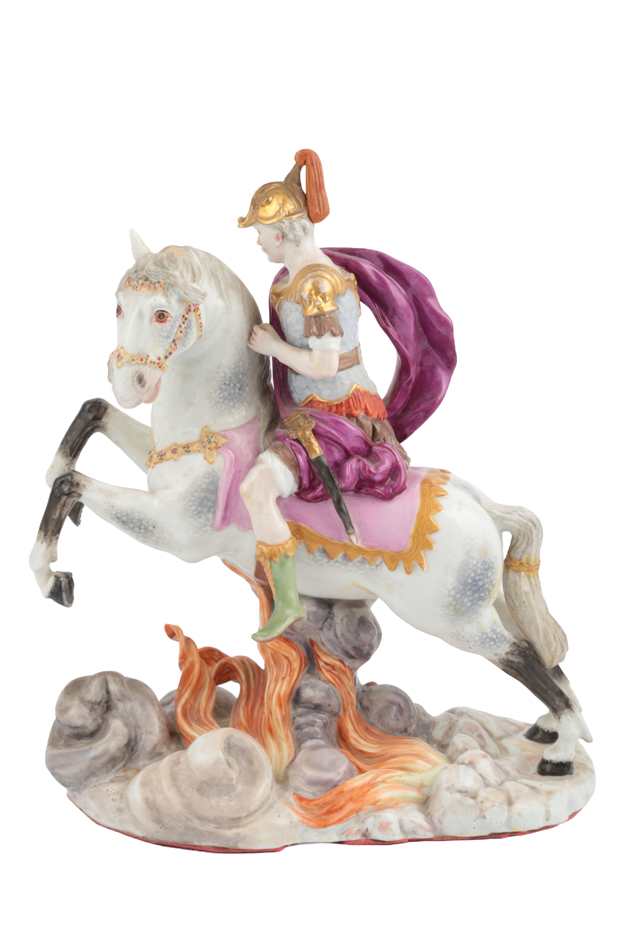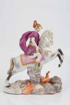 The equestrian figure of Marcus Curtius was modelled by Desoches around 1773; see Beatrix Freifrau von Wolff Metternich/ Manfred Meinz, Die Porzellanmanufaktur Fürstenberg, vol.II, ill.291, for the coloured example in the Herzog Anton Ulrich-Museum, Braunschweig, dated to c.1805.