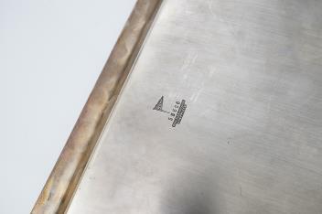 Minor scratches in places and circular patches caused by items being placed upon. Should clean up. Small ding to the top of tray. Hallmarks clear. Sterling silver (92.5%).