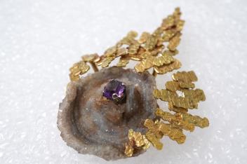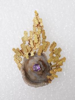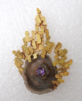 Lot 661 , An 18ct gold, drusy quartz and amethyst pendant, circa 1970