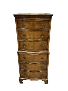 Lot 1008 , A reproduction George I style narrow walnut serpentine six drawer chest, width 55cm, depth 39cm, height 130cm