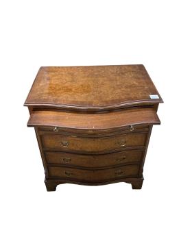 Lot 1052 , A reproduction George I style walnut serpentine four drawer chest, with brushing slide, width 70cm, depth 48cm, height 77cm
