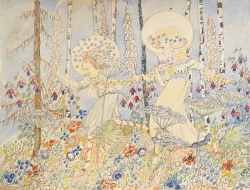 Lot 13 , Jessie Marion King, 1875-1949, 'In Tír na nÓg - Knee deep in Faerie flowers'