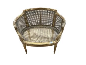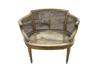 A late 19th century French caned giltwood tub chair, width 77cm, depth 50cm, height 71cm