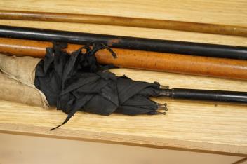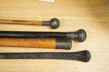 Lot 485 , Three silver topped walking canes and a similar parasol, largest 97cm in length