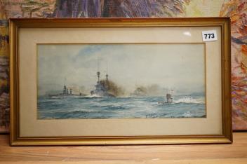 Lot 773 , Eric Erskine Campbell Tufnell (1888-1978), ‘King George V and Agamemnon of Gibraltar’, signed and dated Feb 20th ‘14, watercolour heightened with white, 16 x 36cm