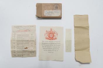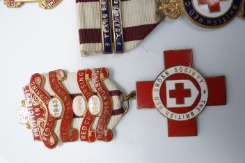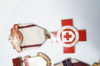 A collection of ten WWI and WW2 medals; a First World War trio awarded to T4-058250 Dvr. A.D. Vaughan. A.S.C., a 1914-1918 medal to G-45340 PTE. H. Sheere. Middlesex Reg., and a medal pair to 6380 PTE. H.L. Jacobi. 21st London Reg., together with five WWII medals including the France and Germany star, three Red Cross medals, the Catholic Association lapel badge, and a WWII card issue box addressed to F/Lt. (Dr.) R.B. Jacobi