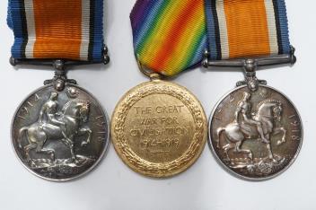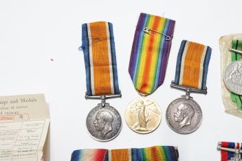Lot 1349 , A collection of ten WWI and WW2 medals; a First World War trio awarded to T4-058250 Dvr. A.D. Vaughan. A.S.C., a 1914-1918 medal to G-45340 PTE. H. Sheere. Middlesex Reg., and a medal pair to 6380 PTE. H.L. Jacobi. 21st