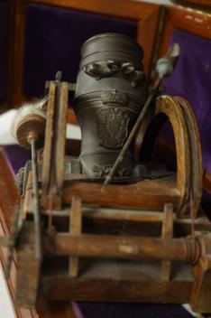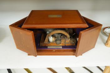 Lot 1294 , A teak cased presentation model of a bombarda mortar cannon in an oak frame, presented to Admiral Sir Michael Pollock from the Chief of Staff of the Italian Navy, with applied plaque to the lid engraved; ‘To Admiral Sir