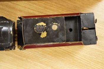 The model is showing significant signs of its age with general wear and losses to the paintwork. The measurements across the wheels from outside flange to outside flange is approximately 43mm.