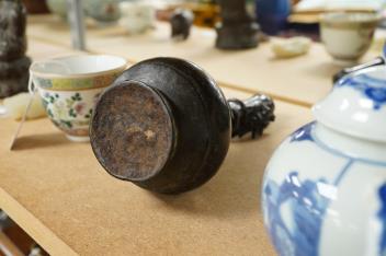 Lot 1596 , A Chinese bronze ‘chilong’ bottle vase, 17th / 18th century, 22cm high