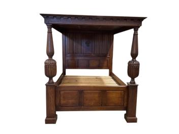 Lot 9 , A reproduction Tudor style oak four poster bed, width 174cm, length 230cm, height 198cm
