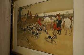 Lot 2760 , After Cecil Aldin (1870-1935), ‘The Fallowfield Hunt’ to include 'A Check', 'The Hunt Supper' and 'Breaking cover, set of six lithographs, published Lawrence & Bullen, London, unsigned, 53 x 77cm, framed