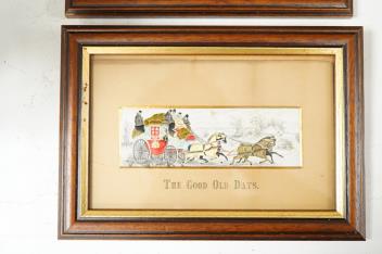 Lot 1438 , Two Victorian Stevengraphs comprising The Good Old Days and The Present Time, framed, 26cm wide