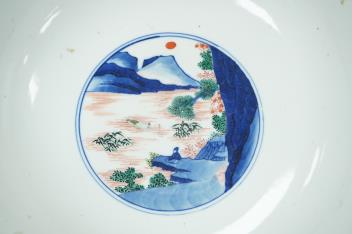 Lot 1469 , A Chinese famille verte ‘warriors’ bowl and a blue and white ginger jar, bowl 29.5cm diameter