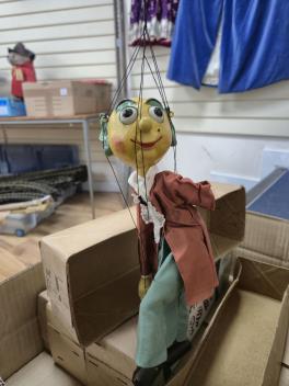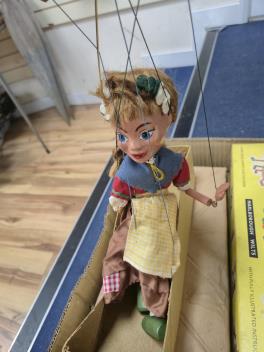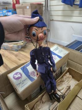 Lot 338 , Five boxed Pelham Puppets including; a Type SL Hansel, Gretel, Bembo the Clown, the Policeman with moving mouth, Mr. Turnip
