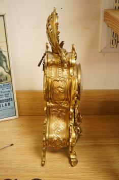 An early 20th century French Louis XV-style ormolu clock garniture - clock 50cm high