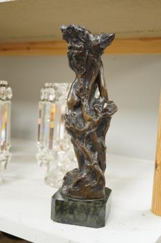 A bronze figurine of a nude female, raised on marble base, unsigned, 29cm high