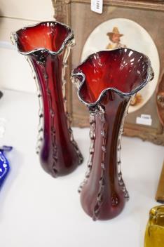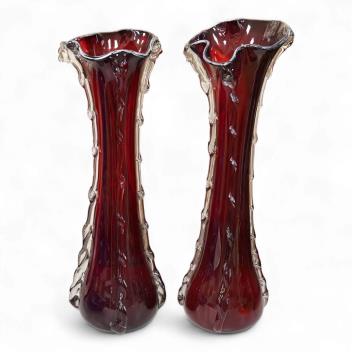 Lot 1493 , A pair of tall ruby and clear glass vases, 51cm high