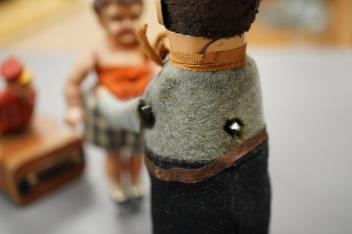 Lot 325 , A Gescha, DRGM (Germany), clockwork tinplate acrobatic bellboy on ‘Express’ trunk, together with a Schuco, Germany tinplate and cellulose clockwork man with girl automaton