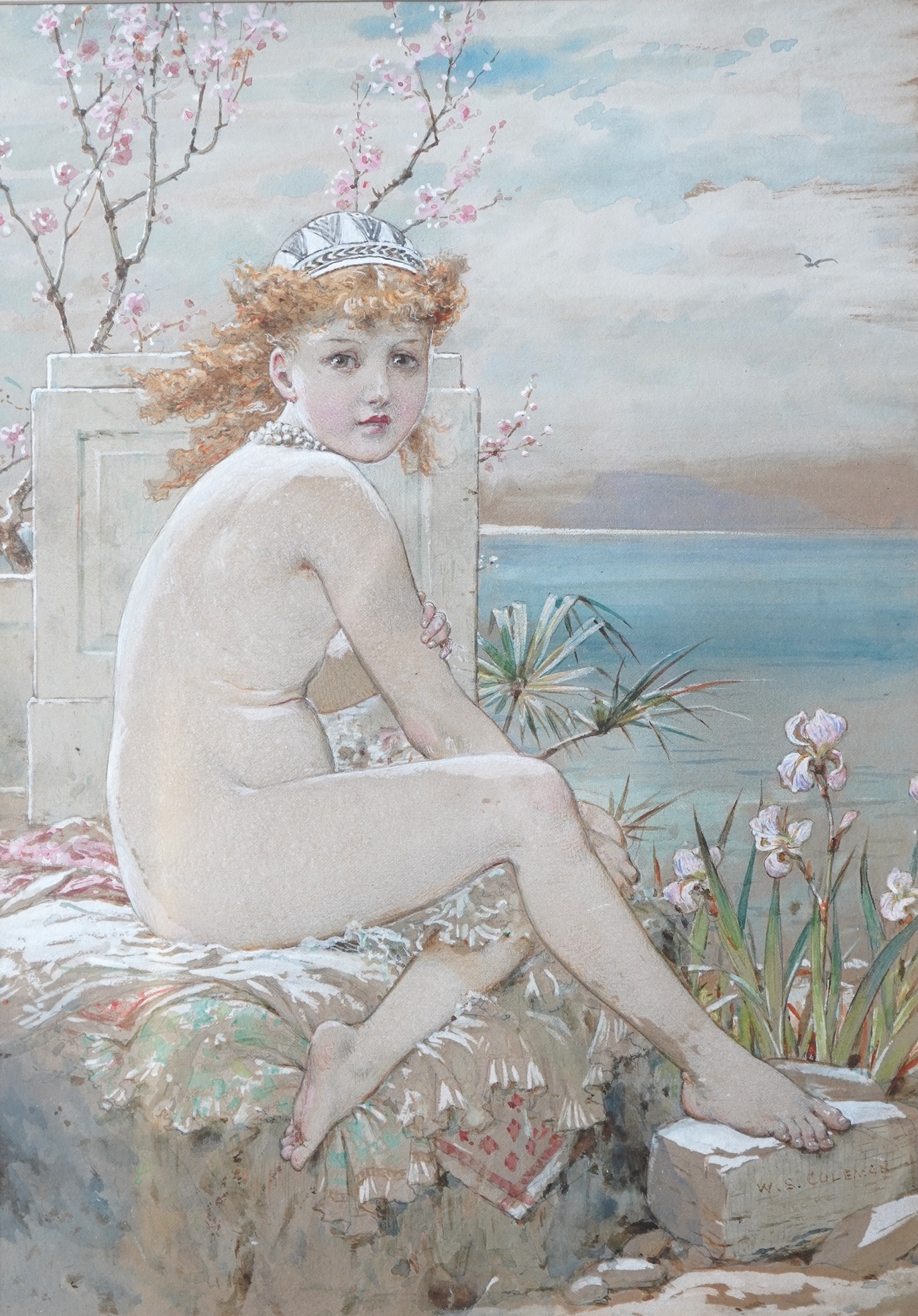 William Stephen Coleman, 1829-1904, Portrait of a seated young girl before a monument and blossom