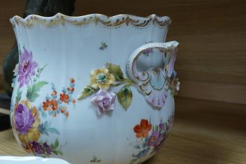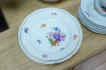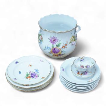 Lot 2382 , A collection of Meissen porcelain to include floral side plates and a German floral encrusted pot, 18cm high