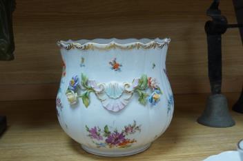 A collection of Meissen porcelain to include floral side plates and a German floral encrusted pot, 18cm high