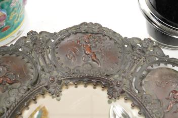 Lot 1273 , An ornate circular decorative bronzed metal putti decorated wall mirror, 40cm