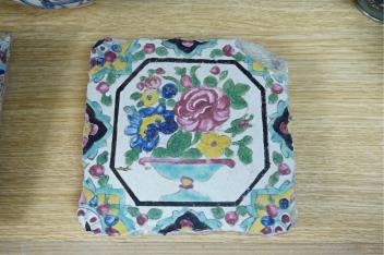 Lot 2354 , A Persian stoneware vase (reduced) and two floral tiles