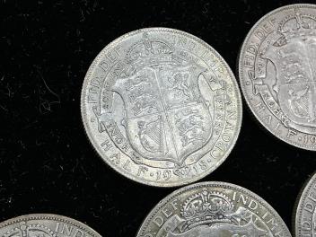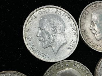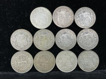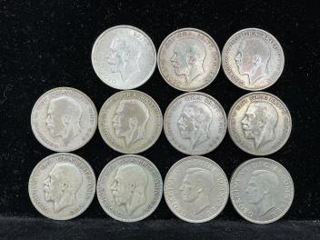 Lot 2019 , British silver coins, George V to George VI, halfcrowns;, 1918, about EF, 1914, 1924×2, 1925, 1926×2, 1930×2, various grades, 1942, about EF, 1946, about EF