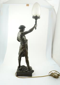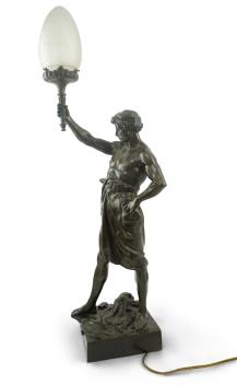 Lot 265 , After Émile Louis Picault, a large bronze figural lamp