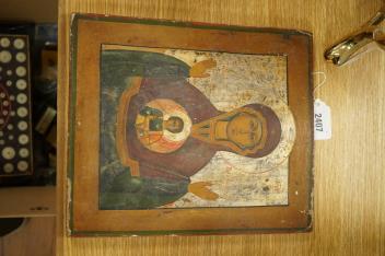 Lot 2407 , A 19th century Greek painted wood icon of Madonna and child, 31cm high