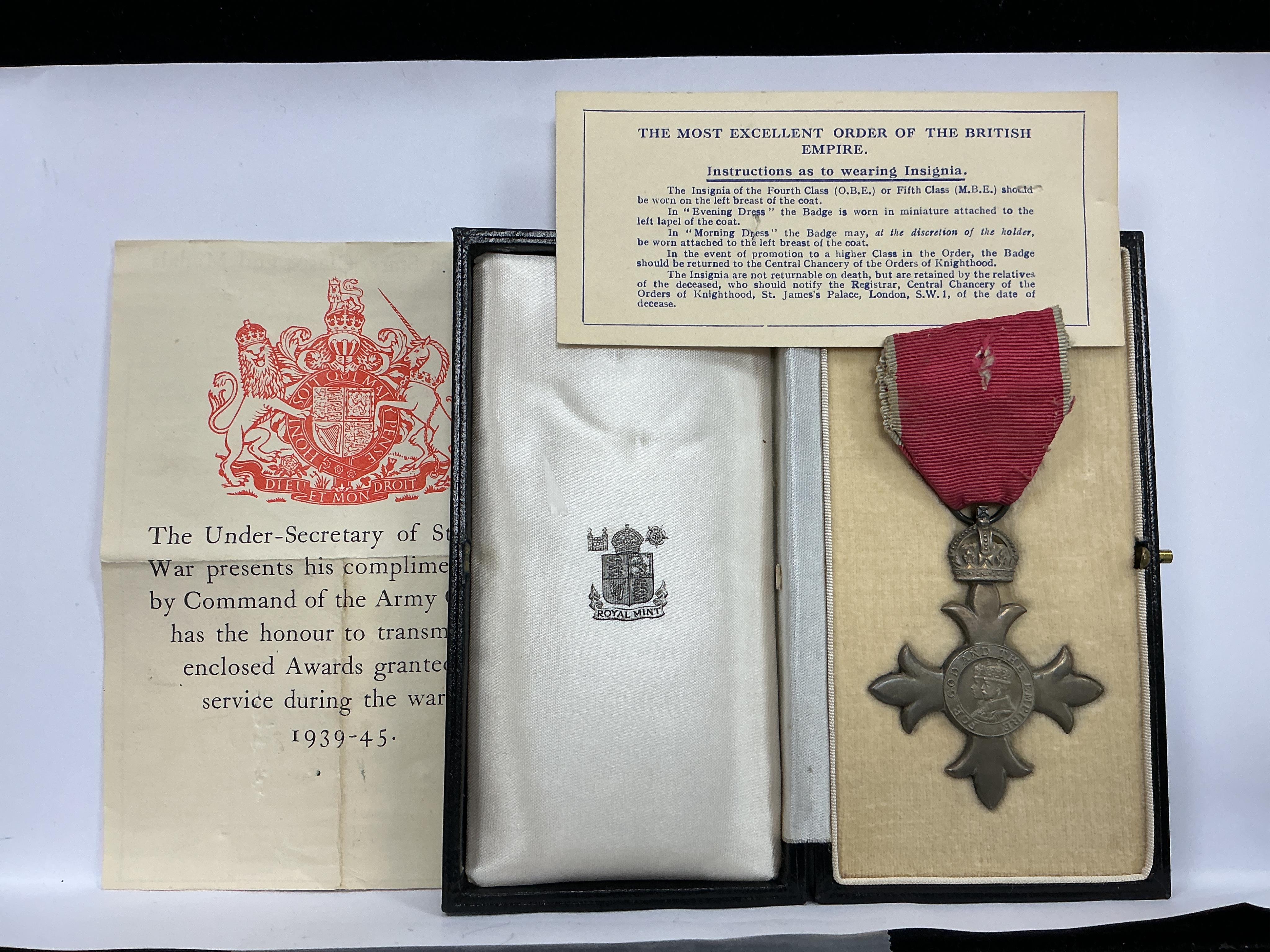Lot 2030 , A George VI military MBE medal, cased