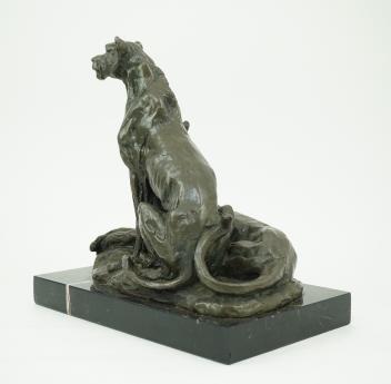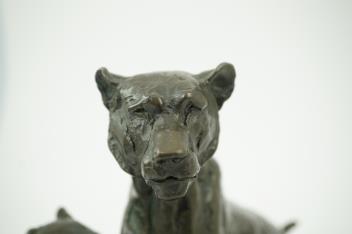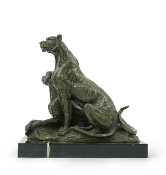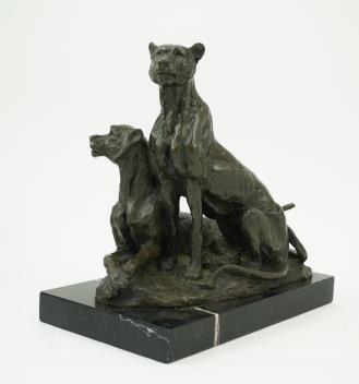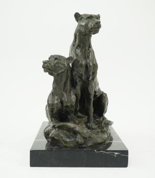 Lot 1321 , Miguel Fernando Lopez (Portuguese, contemporary): A painted bronze group of two lionesses