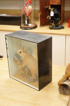Lot 321 , A cased taxidermy red squirrel, in a painted pine case; 27.5cm wide, 31cm high, 14cm deep