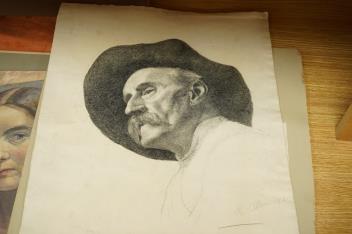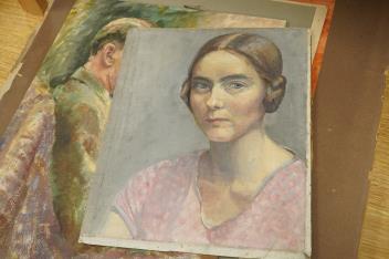 Lot 2742 , Enid Allen, A small collection of vintage student works from the 1910’s to include: Skeletal hound studies, Still lifes and Flowers, together with Portrait studies by another hand and a watercolour of a Shoreline view, a