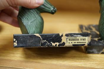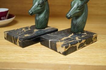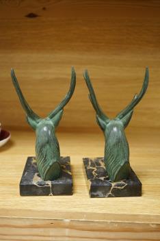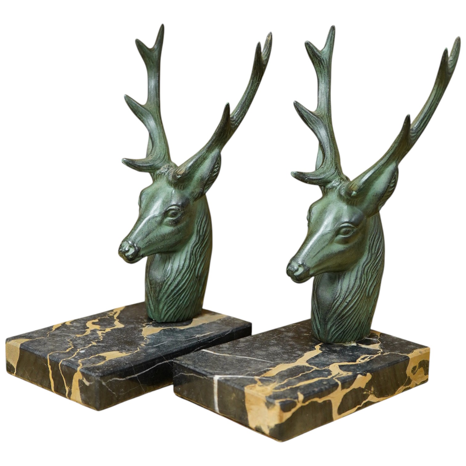 Lot 2367 , A pair of French bronzed stags head bookends, 19cm high
