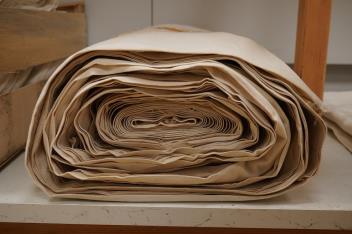 A bolt of 20th century French linen sheeting, approx 2.2 meters wide x 21meters long