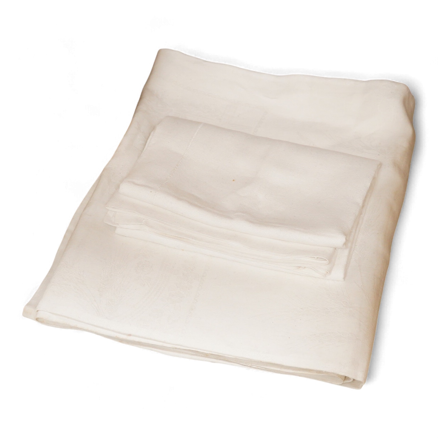 Lot 1314 , A French late 19th early 20th century large damask table cloth and a smaller table cloth.