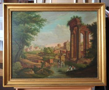 Lot 187 , Continental School, 18th century, An Italianate landscape with fountain and ruins