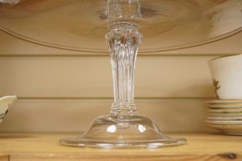 Lot 2419 , A late 18th century glass tazza, circa 1780, with a ‘’Silesian’’ stem, on a domed and folded foot, 14.5cm high x 30.5cm diameter