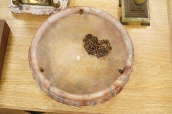 Lot 2411 , A carved alabaster ceiling shade, 39cm in diameter