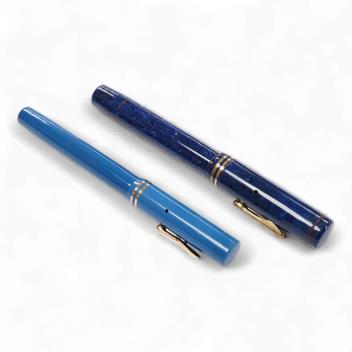 Lot 2093 , Two Conklin Enoura fountain pens in lapis blue (Senior) and a pale blue example
