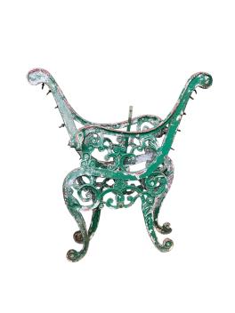 A pair of Victorian style cast metal bench ends and a slatted wood garden bench