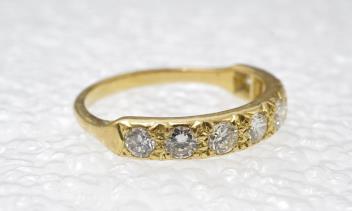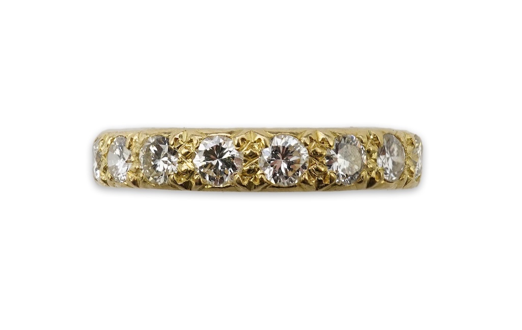 A diamond half eternity ring, set to the front with a sequence of eight brilliant-cut diamonds totalling approximately 0.80 carats, mounted in gold, size R, stamped 18ct, gross weight approximately 3.5 grams
